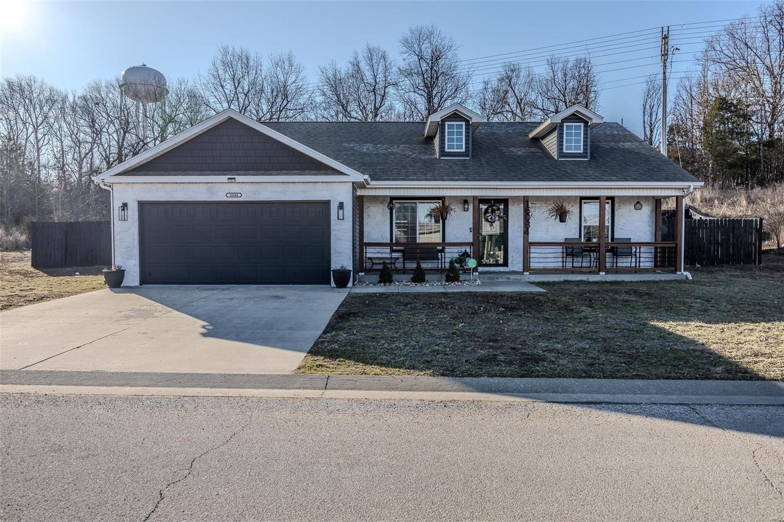 Let the modern curb appeal bring you up to the covered front porch of this beauty, complete with enough room to sit and enjoy! From the front door, enter in to a sleek and stylish, updated ranch, with the living room leading you to the kitchen, where ample counter space and storage await. The breakfast bar provides a nice transition to the dining room, where sliding glass doors take you to an oversized patio, flat and fenced backyard, with plenty of room for play and entertaining. Back inside, the primary suite includes a dimensional ceiling, walk-in closet and a bathroom that is sure to be a place for relaxation. The laundry room is convenient located near the garage, along with containing the furnace and water heater. Across the home, two additional bedrooms and one bathroom round out the main floor. The garage is ready for your two cars, gym, hobby space, etc! Located just minutes from I-44, restaurants and Fort Leonard Wood, the convenience of this "county" home can't be beat!
